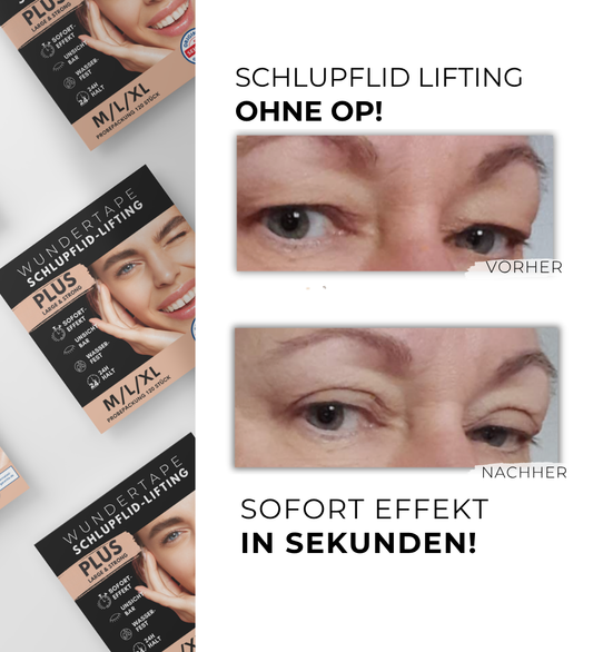 Sofort-Effekt in Sekunden! Das Auge wird durch das WUNDERTAPE auf eine natürliche Art und Weise geliftet.