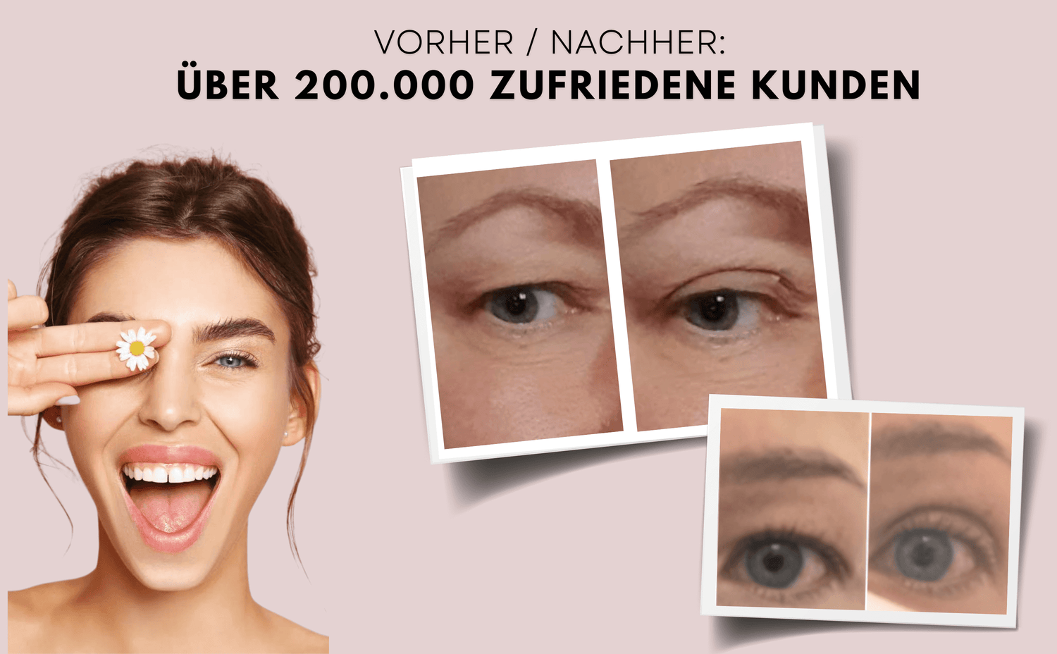 Nachher: Geöffnete, strahlende Augen ohne OP