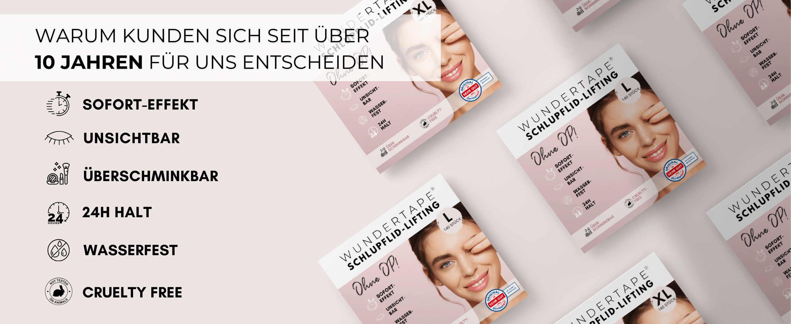 Möchtest du täglich einen natürlichen und frischen Blick haben, ohne sich um Make-up oder teure Schönheitsbehandlungen kümmern zu müssen? WUNDERTAPE ist die Lösung!