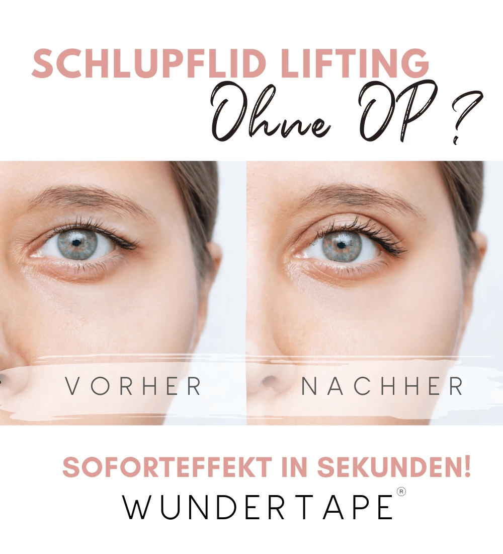 Schlupflider können das Aussehen unserer Augen verändern und müder und älter aussehen lassen, als wir uns fühlen. Unsere Lösung: WUNDERTAPE. Schlupflid-Lifting ohne OP!